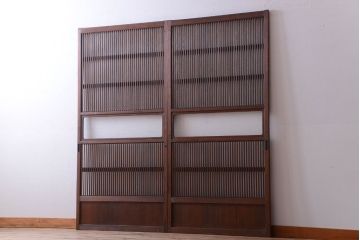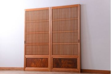 組子建具板戸やガラス戸、障子戸、欄間などの一部に組子細工が入ったアンティーク建具。麻の葉や胡麻、菱など伝統的な美しい文様が楽しめる。間仕切り建具におすすめ。