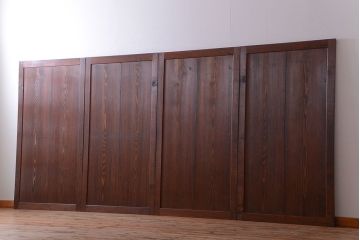 板戸・帯戸シンプルな板張りのアンティーク建具。帯戸は板戸の中央に帯が入ったもの。美しい木目や古い味わいが楽しめる。空間を完全に遮りたい場所におすすめ。