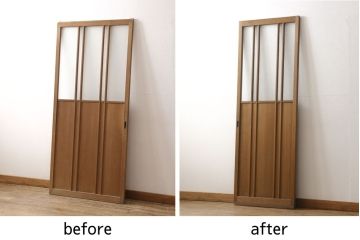 ただ、古い建具で変色やシミ、傷などが多い場合や、新材を継ぎ足してリサイズした場合は、着色なしだとダメージや継ぎ目がそのまま目立ってしまいます。それらを消したいなら、自然に見える範囲でうすく着色して仕上げる方がおすすめです。