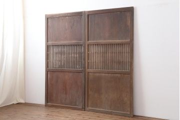 板戸・帯戸シンプルな板張りのアンティーク建具。帯戸は板戸の中央に帯が入ったもの。美しい木目や古い味わいが楽しめる。空間を完全に遮りたい場所におすすめ。