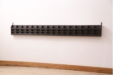 アンティークシェルフ棚がマス目に区切られた収納力もあるシェルフ