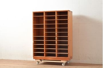 アンティークシェルフ棚がマス目に区切られた収納力もあるシェルフ