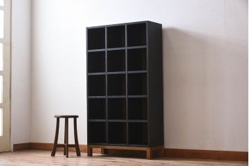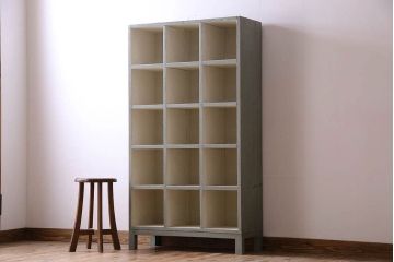 アンティークシェルフ棚がマス目に区切られた収納力もあるシェルフ