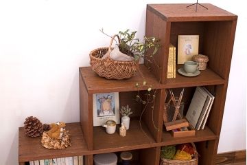 お部屋の中に植物を取り入れたいけど置き場所に悩む…といった場合にも、アンティークラックがおすすめです。お部屋の一画にしっかりとスペースを確保してあげることでメリハリが生まれ、より魅力的に植物を飾ることが出来ますよ。おしゃれにディスプレイするポイントは「変化をつけること」。植物を入れる容器に鉢やガラスコップ、マグカップなど様々なものを使ったり、木箱やワイヤーバスケットに複数の植物をまとめてみたり。単調な印象にならないように工夫することで植物の魅力が引き立ち、眺めていて楽しいディスプレイになりますよ。