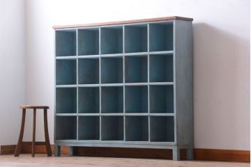 アンティークシェルフ棚がマス目に区切られた収納力もあるシェルフ