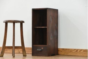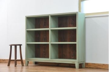 アンティークシェルフ棚がマス目に区切られた収納力もあるシェルフ