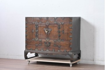 また、李朝の薬箪笥は下部に扉を備えた仕様のものがしばしば見られます。日本の箪笥の開口部は引き戸が一般的ですが、李朝家具の場合は観音扉式が圧倒的に多い印象。同じ東洋の国なのに開閉方法に違いがあるところも、ちょっと注目してみたいポイントです。