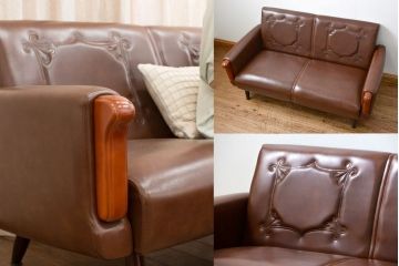 合成皮革(合皮)張りのアンティークレザーソファ