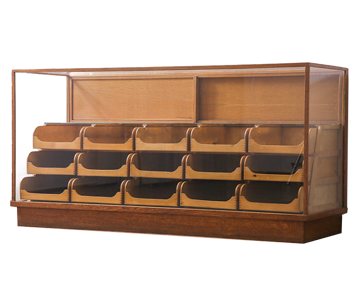 現代では食器棚やコレクションケースとして活用されることもあり、店舗什器としてだけでなく自宅に取り入れている例も多くあります。
