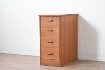木製サイドチェスト古い質感が味わいのある、昭和時代に使われていたシンプルなサイドチェスト