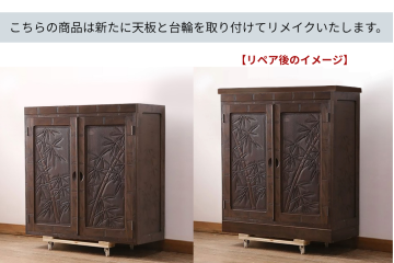 フローリングのお部屋に溶け込むつくりながら、桜のモチーフや違い棚など、随所に日本らしさも感じるサイドボードです。天板にも桜が彫られており、目に入る度気分が上がりそうですね。