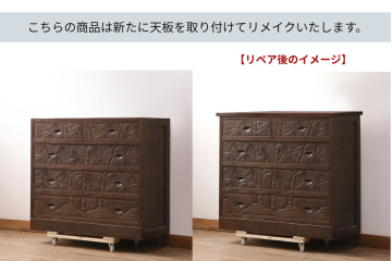 軽井沢彫りと言えば彫刻に目が行きがちですが、こちらのチェストで注目したいのは取っ手。木材を削りだして作った取っ手が、素朴でやさしい印象を与えます。木のぬくもりを存分に感じられるお品です。