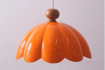 昭和レトロなアンティーク照明には、樹脂製のベークライトシェードやプラスチックシェードなどもあります。こちらはガラスよりも空間のアクセントになるようなカラフルなものが豊富で、レトロポップなインテリアにぴったりです。