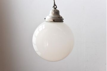 シンプル・ナチュラルなインテリアには、空間に溶け込むようなシンプルなシェードのアンティーク照明がおすすめ。例えば、和製アンティークのガラスシェード照明や球体型のガラス照明、北欧アンティークの木製照明などがぴったりです。存在感は控えめですが、アンティークらしい味わいがあって部屋に味わい深い雰囲気をプラスしてくれます。また、ちょっと個性をプラスしたい方には、オパールガラスシェードやホーローシェードなど、ユニークな素材感のアンティーク照明を取り入れるのもおすすめですよ。