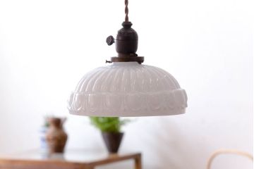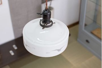 レトロテイストのインテリアには、昭和レトロな和製アンティーク照明がおすすめです。ガラスシェードだと、ミルクガラスシェードや絵柄入りのガラスシェードなどがあります。西洋アンティークのガラスシェードよりもシンプルでぽってりとした形のものが主流です。