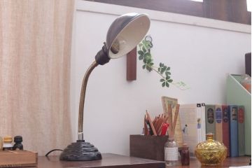 また、フロアスタンドやテーブルランプ、デスクライトなどのスタンド型アンティーク照明は、コンセント式にリメイクしたものが主流です。こちらも手軽に取り入れられるのがうれしいですね。間接照明や作業時の補助照明として活躍します。