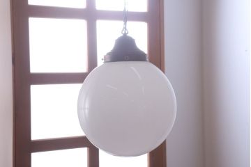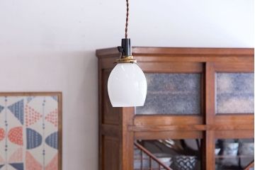 シンプル・ナチュラルなインテリアには、空間に溶け込むようなシンプルなシェードのアンティーク照明がおすすめ。例えば、和製アンティークのガラスシェード照明や球体型のガラス照明、北欧アンティークの木製照明などがぴったりです。存在感は控えめですが、アンティークらしい味わいがあって部屋に味わい深い雰囲気をプラスしてくれます。また、ちょっと個性をプラスしたい方には、オパールガラスシェードやホーローシェードなど、ユニークな素材感のアンティーク照明を取り入れるのもおすすめですよ。