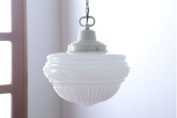 レトロテイストのインテリアには、昭和レトロな和製アンティーク照明がおすすめです。ガラスシェードだと、ミルクガラスシェードや絵柄入りのガラスシェードなどがあります。西洋アンティークのガラスシェードよりもシンプルでぽってりとした形のものが主流です。