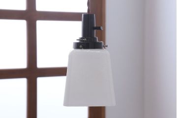 新築やリフォームなどでアンティーク照明を取り入れる際は、コード直結式のペンダントライトやシーリングライト、壁掛け照明も人気。技術者による電気工事が必要ですが、壁や天井に直接取り付けるので、見た目がすっきりと美しく仕上がります。ちなみに当店では、引っかけシーリング式の照明を直結式に変更したり、反対に直結式から引っかけシーリング式にしたり、といったリメイクも承っていますので、ご希望の方はお気軽にご相談ください。