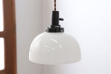 レトロテイストのインテリアには、昭和レトロな和製アンティーク照明がおすすめです。ガラスシェードだと、ミルクガラスシェードや絵柄入りのガラスシェードなどがあります。西洋アンティークのガラスシェードよりもシンプルでぽってりとした形のものが主流です。