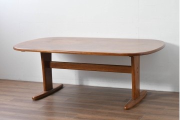 アンティークテーブルには、天板が楕円型のものもあります。特に、アンティークダイニングテーブルに多い形です。楕円型のアンティークテーブルは、円形天板よりも空間への収まりが良く、円形天板のように空間のアクセントになるのが魅力。角が丸く切り落とされている分、大きなサイズでも角型ほど圧迫感なく取り入れられます。