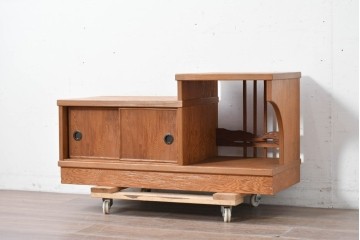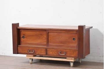 車輪が付いた車箪笥タイプの和風家具・和家具は転がして移動できると昔は重宝されてたアイテム。商品在庫や家財道具などを入れて活用していたそうです。車輪のおかげで高さが出る分、脚付きのようなモダンな雰囲気がするのが面白いところ。さらに金具も控えめなので現代的なお部屋にも馴染みやすく人気の高いアイテムです。