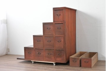 各段ごとに分解可能。珍しい造りの現代物の階段箪笥