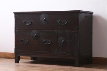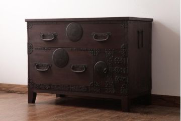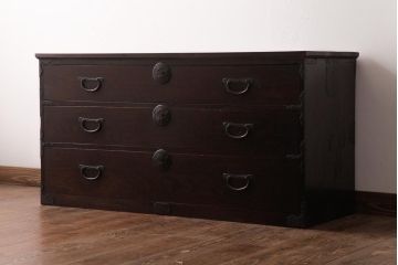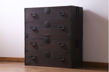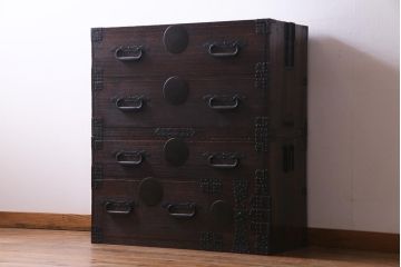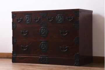 黒の紋様が美しい黒柿材製の衣装箪笥