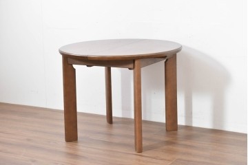 クラシカルな和製ヴィンテージの丸テーブルは程よい大きさのものが多く、ダイニングテーブルとして使いやすくできています。ダイニングというと角型のテーブルを思い浮かべがちですが、丸テーブルに変えると家族の目線が合いやすく、より食事の時間が楽しくなりますよ。