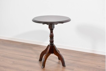 丸テーブルクラシカルなデザインとシックな深い色合いが相まって、上質な雰囲気を醸し出しています。大正ロマンや和モダンテイストのお部屋と相性が良さそうなお品です。