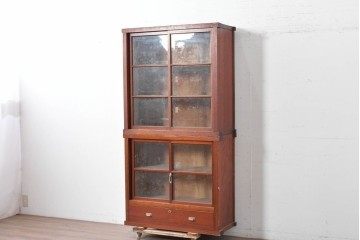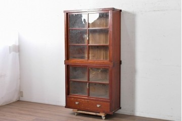 本箱当時物の色ガラス入り、和洋折衷に合う本箱
