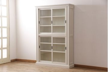 カップボードナチュラルで愛らしい雰囲気のホワイトペイントの食器棚・カップボード