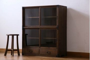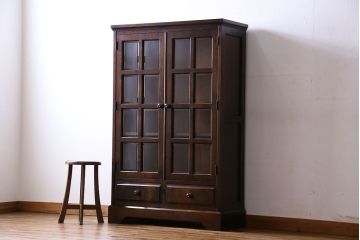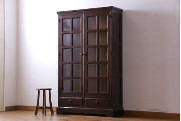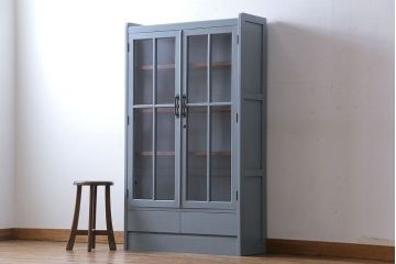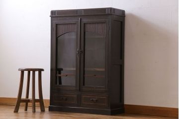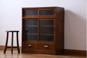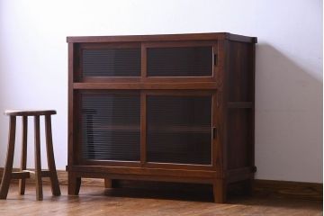 懐かしさ漂うレトロガラス引き戸の和製アンティーク食器棚