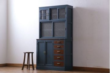 アンティークペイントが施されたレトロな食器棚・カップボード