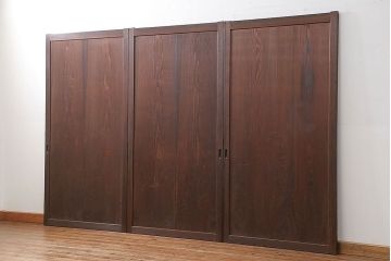 板戸・帯戸シンプルな板張りのアンティーク建具。帯戸は板戸の中央に帯が入ったもの。美しい木目や古い味わいが楽しめる。空間を完全に遮りたい場所におすすめ。