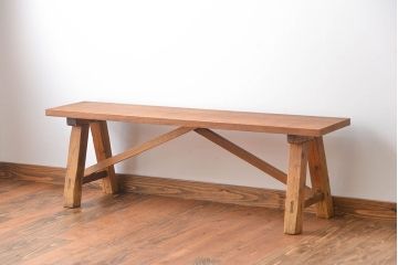 日本生まれの古いベンチ。和製ならではの素朴さと頑丈さが魅力です。