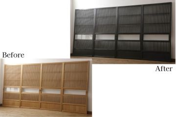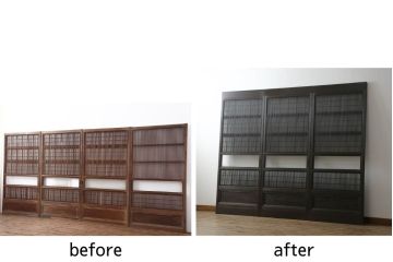 板戸・帯戸をお部屋に取り付けるには、板戸・帯戸がぴたりとはまる枠組みが必要となります。新築やリノベーションの場合には、前もって使いたい板戸・帯戸を購入しておき、それに合わせて業者さんに枠を作ってもらうのが確実です。また、既にある引き戸用の枠に取り入れる場合、開き戸用の枠を作り直して取り入れる場合にもやはりそれぞれ工事が必要となってきます。使いたい板戸・帯戸のサイズを業者さんと確認しつつ、どのような工事を行うことになるのか、費用はどのくらいかかるのかをしっかりと相談するようにしましょう。 また、アンティーク家具ラフジュ工房でも板戸・帯戸の希望サイズへのリサイズを有料にて承っておりますが、施工についてはやはり専門の業者さんにお任せする形になります。気になるデザインの板戸・帯戸を見つけた際には業者さんとご一緒に商品のページを見るなど、細かく確認をしていってくださいね。