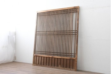 規則的に並んだ繊細な竪子が上品な縦格子戸。京都の町屋や日本家屋などでよく見かけられるもので、格子戸の中でも定番のデザインのため、アンティーク家具ラフジュ工房でも特に多くの種類を揃えています。最近では、昔ながらの空間を楽しめる古民家風のカフェなどにも人気の高いデザインです。ぼんやりと向こう側が見えて、閉塞感がなくすっきりとした印象になりますよ。また、縦格子の中でも間隔の広いレトロなものや、平格子などの桟の幅が広いものもあります。格子の太さ、間隔などが違うだけでも印象が変わるので、イメージに合わせて選んでみてくださいね。