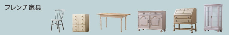 アンティーク家具明るい木味と白ペイントを基本とした、フレンチスタイルのナチュラルなアンティーク家具。フレンチカントリー家具も含め、クラシカル、シャビー、レトロなものなど幅広いデザインがある。