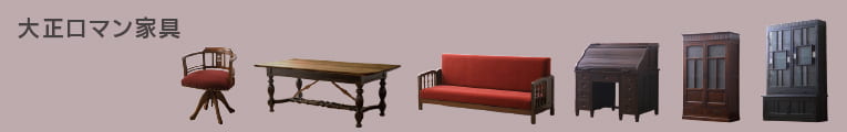 当店では、キャビネットやチェア、テーブルや飾り棚など、大正ロマンな家具を幅広く取り揃えております。