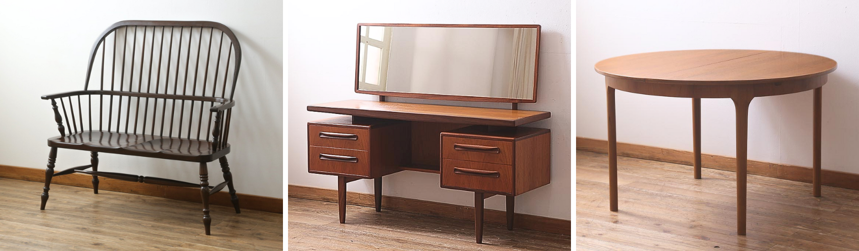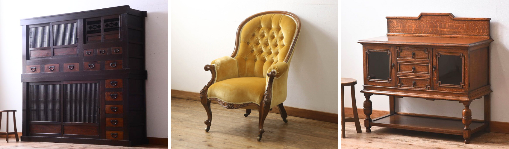 お客様にはぜひ、新品の家具にはない古いものならではの風合いをお楽しみいただければ幸いです。