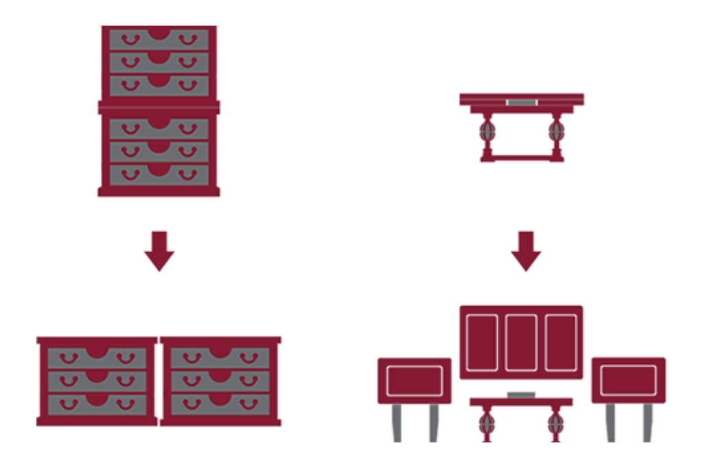 大型の和箪笥・ドローリーフテーブル・デスクなど、大きい家具の中には分解可能なものも多くあります。