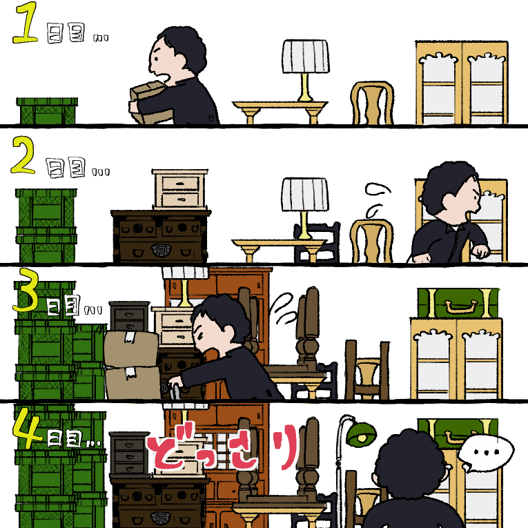 お客様がゴミだと思って捨てたものの中にほしいものがあったりするので、できるだけ片付けずにいてもらった方がありがたいです。