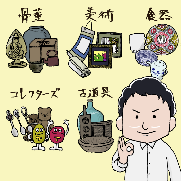 お茶道具、掛け軸、美術品や洋食器、コレクターズアイテムその他諸々、 家中のもの全部まとめて査定できると思っていただいて構いません。