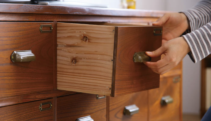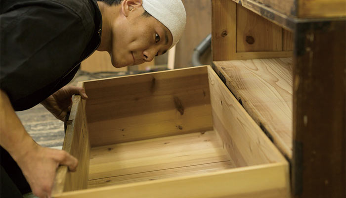 昔の引き出しは深さがあったり幅広のものが多く、人によっては使い勝手が悪く感じる場合も。そんなときは一杯の引き出しを2杯、3杯と希望の杯数に分割することもできます。