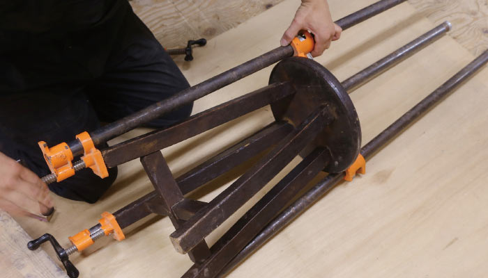 現代の暮らしでちゃんと使えるものにするため、構造面から見直し修復します。時に全て分解して確認することも。家具の外観は損なわぬよう、見えない部分で補強を行います。
