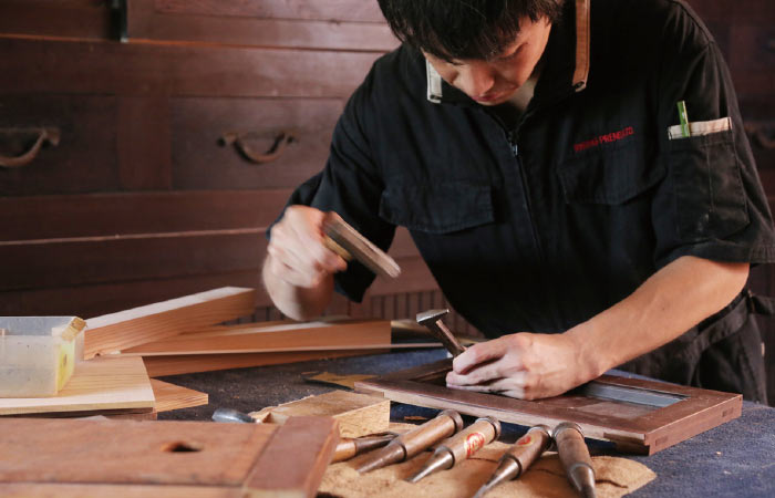 プロとして当時の時代背景を大切にしながら直すことを心がけています。修復の際に使用する木材もなるべく当時と同じものを選んだり、細かい部分までしっかり目を配ります。