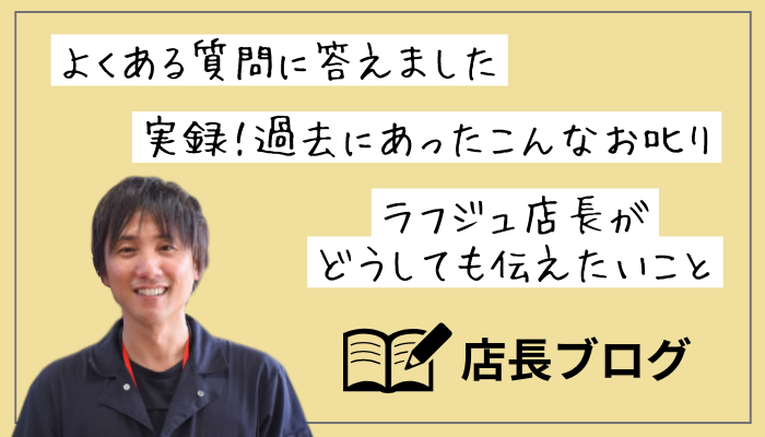 お客様から寄せられたさまざまな疑問、そして時にお𠮟りの声に、ラフジュ店長自ら答えるコンテンツです。店長だからこそ語れる、ラフジュ工房のあれやこれが聞けるかも…?