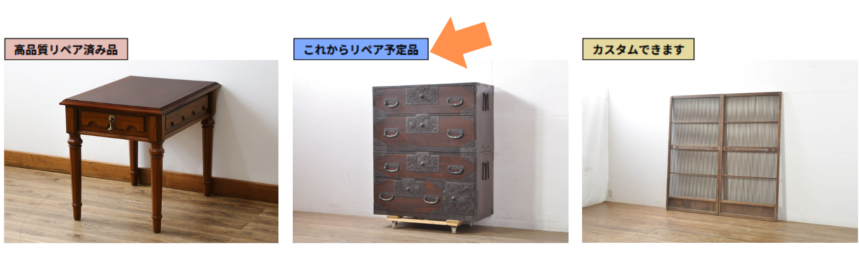 さらに当店では、 お客様が 他店で購入されたお手持ち家具や建具も 、もれなくリペア・リメイクを承っております。