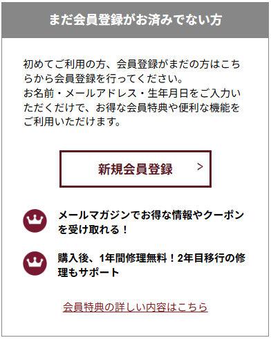 会員登録いただきますと、マイページやアフター修理サポートなど便利なサービスをご利用いただけます。